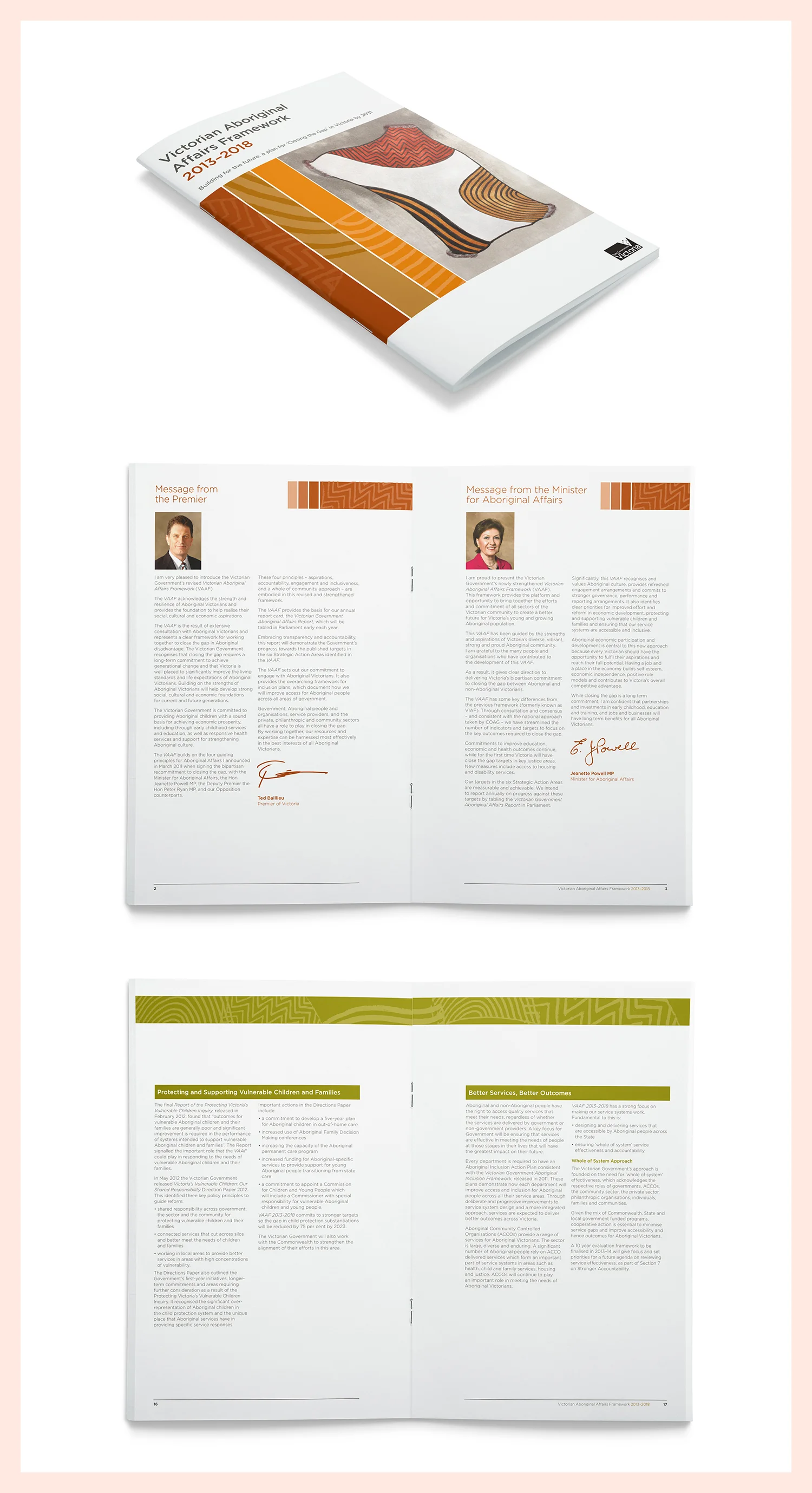 The framework was develop by the former Victorian Government and represented Government and Aboriginal community commitments and efforts to create a better future for Victoria's Aboriginal population.