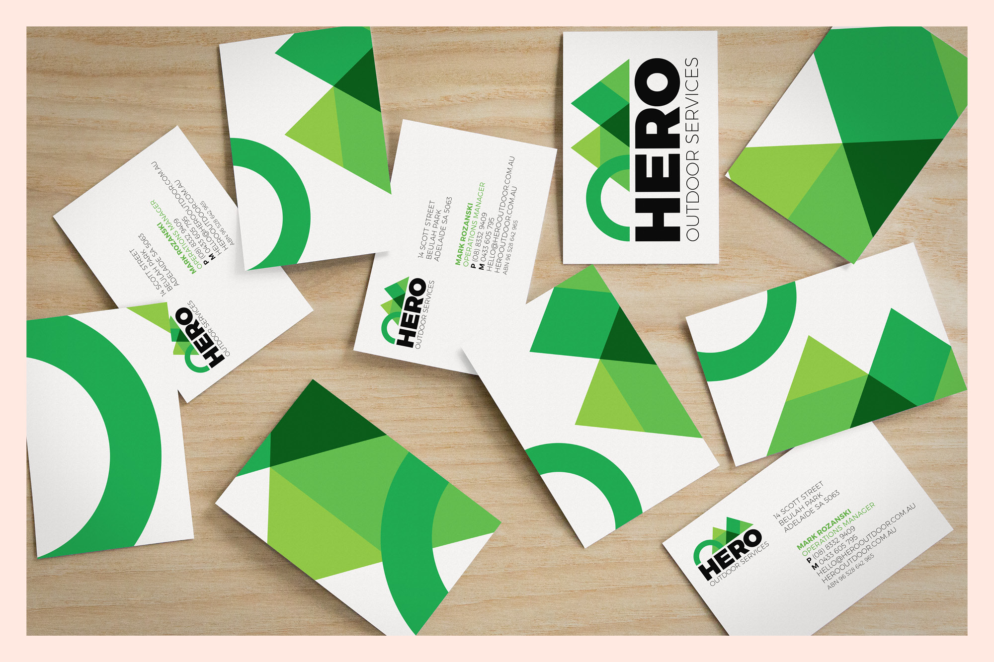 Logo and visual identity design for Hero Outdoor Services – landscaping business based in Adelaide.